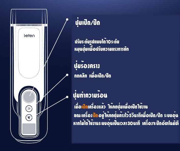 ⚠️ห้ามจุ่มแช่ในน้ำทั้งอัน อาจทำให้น้ำเข้าไปในตัวเครื่องได้